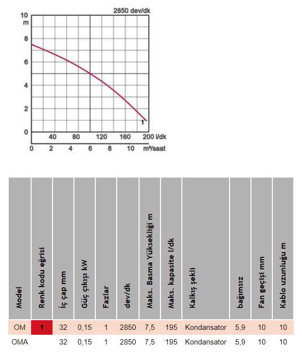 "OM serisi, en kompakt atık su pompasıdır. Vorteks tasarımına sahiptir ve orta büyüklükte katı parçacıklar içeren sıvıları transfer edebilir. Pompa, özel reçine ve paslanmaz çelikten yapıldığından, korozyona dayanıklıdır ve hafiftir. Yağlamada kullanılan sıvı parafin ile, pompanın dekoratif şelaleler, balık havuzları, su ürünleri yetiştiriciliği gibi uygulama alanlarını genişletebilmektedir.