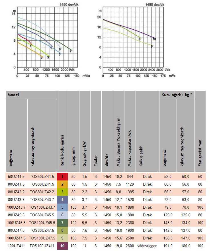UZ serisi, çıkış borusu çapına eşit olan maksimum katı madde boyutunu transfer edebilme özelliğine sahiptir."